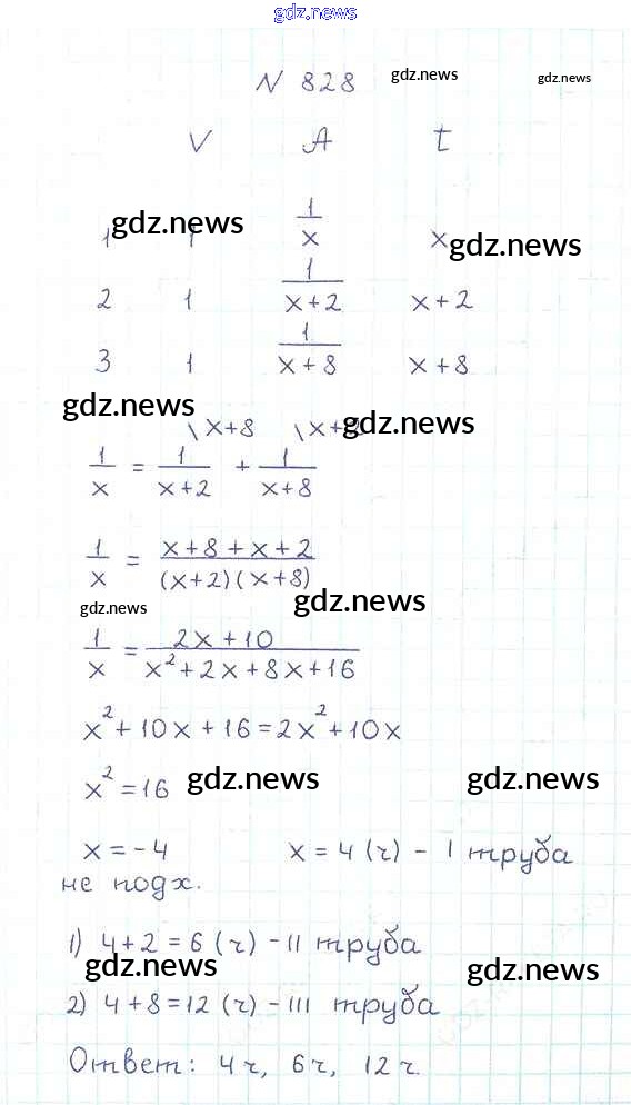 Как эффективно готовиться к домашним заданиям по Алгебре за 8 класс: лучшие стратегии и советы на gdz.news. Здесь подготовлен Учебник Мерзляк, Полонский, Якир Алгоритм успеха - §24. Рациональные уравнения как математические модели реальных ситуаций 828 и готовые ответы к ним. Сверяй домашку и получай отличные оценки!