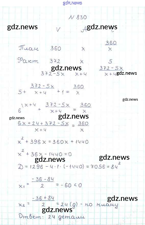 Как эффективно готовиться к домашним заданиям по Алгебре за 8 класс: лучшие стратегии и советы на gdz.news. Здесь подготовлен Учебник Мерзляк, Полонский, Якир Алгоритм успеха - §24. Рациональные уравнения как математические модели реальных ситуаций 830 и готовые ответы к ним. Сверяй домашку и получай отличные оценки!