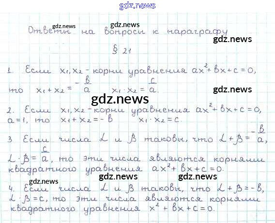 ГДЗ по Алгебре за 8 класс Мерзляк, Полонский Учебник Алгоритм успеха - Вопросы к параграфу §21